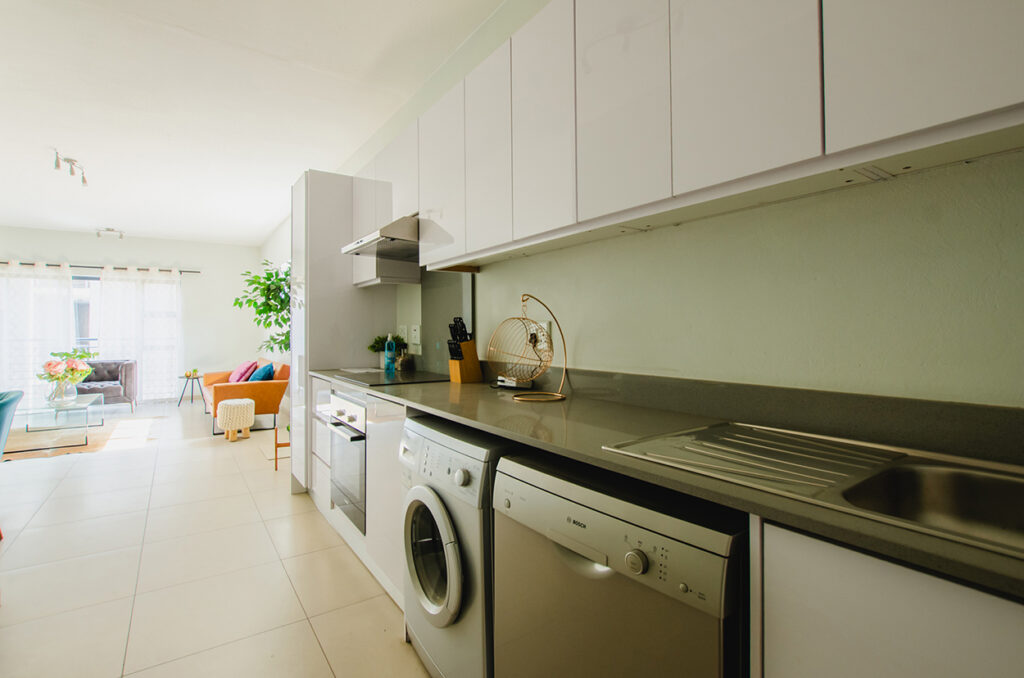 This modern First Floor 2-bedroom apartment at Isabel is thoughtfully designed to brighten every day, with large windows that welcome natural light and stylish high-end finishes that elevate your living experience. The open-plan layout flows seamlessly, with a well-appointed kitchen featuring built-in cupboards, an oven, hob, extractor fan, and plumbing points for both a dishwasher and washing machine β€” making daily life easier and more enjoyable. Both bedrooms offer sliding-door built-in cupboards, while tiled flooring keeps the apartment cool, elegant, and low-maintenance. With fibre and DSTV readiness, staying connected is effortless, and two dedicated parking bays ensure stress-free convenience.