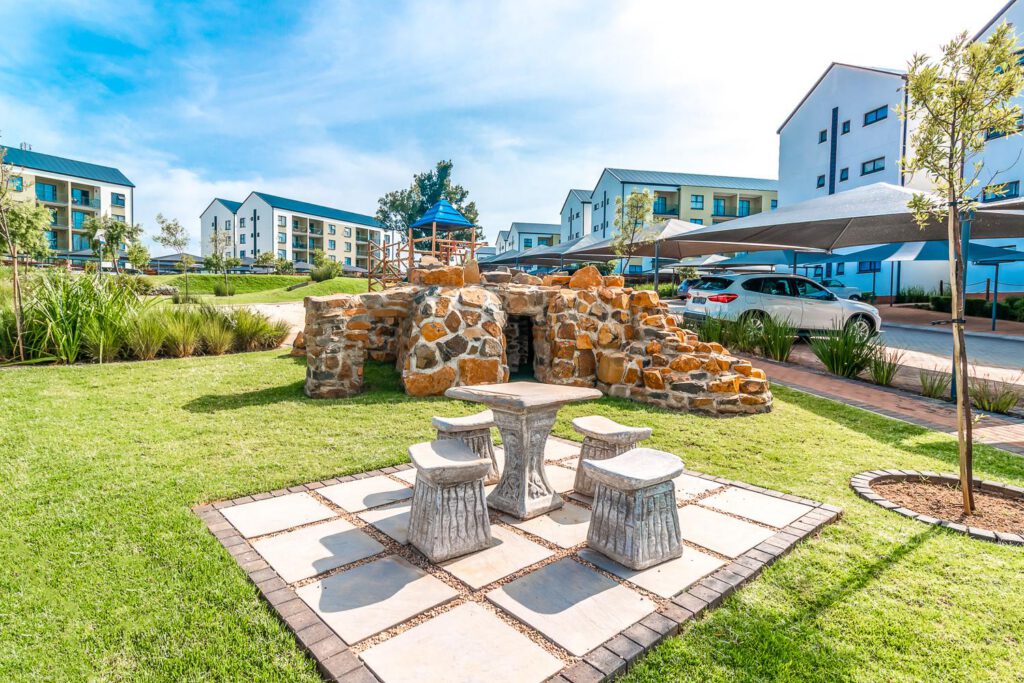 Discover modern, bright designer open-plan apartments featuring prepaid electricity, billed water, and ready connections for fiber and DSTV. Enjoy eco-friendly waste management systems and exclusive gardens for ground-floor units, while upper-floor apartments boast spacious balconies. Each unit includes an electric oven with a counter hob, built-in bedroom cupboards, stone kitchen countertops and splashbacks, and modern sanitary fittings and bathroom accessories. Tiled throughout for easy maintenance, these apartments also offer a plumbing point for a washing machine or dishwasher. Parking is convenient with one covered bay one-bedroom units.