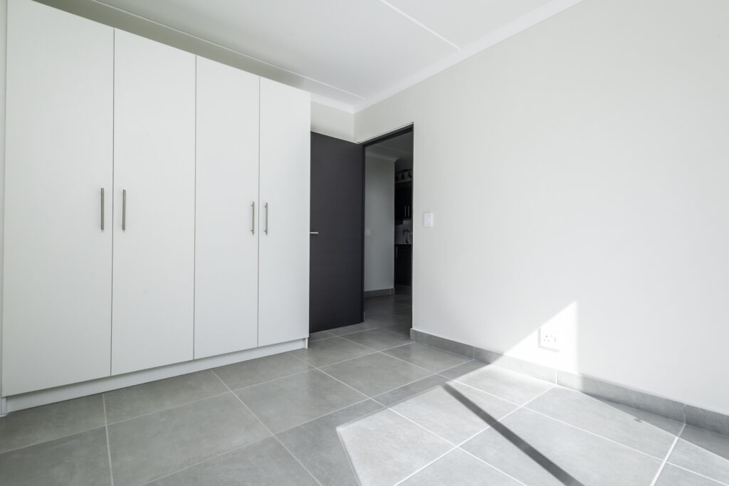 This apartment offers the perfect blend of style and security at Kleijne Wingerd, accessed through the popular Die Wingerd Estate. This 2 bedroom apartment offers a sophisticated living experience with built-in cupboards finished in Ash Woodgrain, a sleek bathroom featuring a shower-over-bath design, and a thoughtfully designed kitchen with a Defy oven, gas hob, and striking black leathered granite countertops. Elegant tiles throughout create a refined backdrop for modern living. With two secure parking bays, prepaid utilities, and fibre-ready connectivity, you’ll enjoy the ultimate lock-up-and-go lifestyle.
