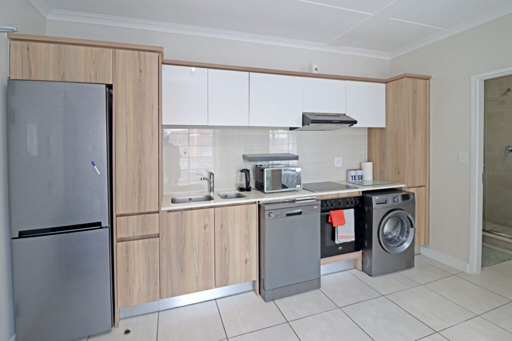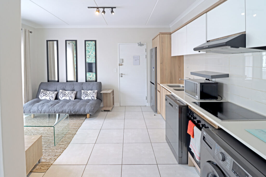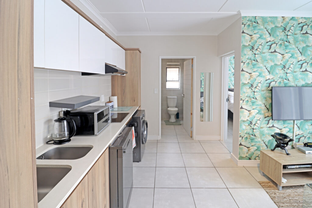 Step into a space where every detail invites you to slow down, unwind, and truly enjoy the moment. This beautifully designed fully furnished 1-bedroom apartment at Blyde Riverwalk Estate offers more than just a place to live — it’s a lifestyle defined by comfort, elegance, and uninterrupted ease with the rare benefit of zero loadshedding. Inside, the bedroom becomes your personal retreat, complete with a plush king-size bed, premium linens, and blackout curtains for restful, uninterrupted sleep. The modern kitchen is fully equipped with high-end appliances, making everything from morning coffee to evening dinners a pleasure, while the open living space flows effortlessly into a tech-ready environment with high-speed Wi-Fi, Smart TV, Netflix, and DStv — perfect for both relaxation and productivity.